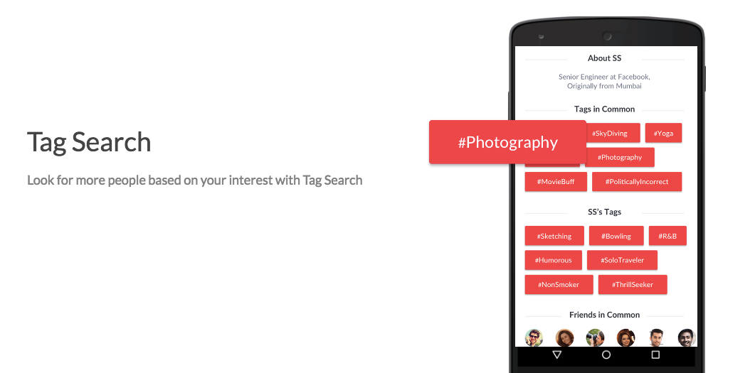 Woo app a tag search options that allows you to choose people with similar interests. Cool, isn’t it?