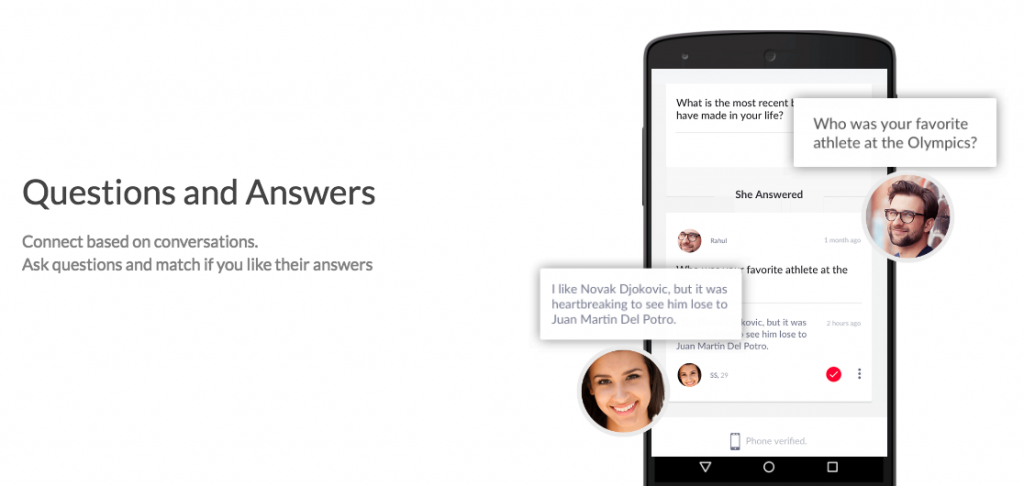 The app also has an internal tool to analyze your profile to see the probability of meeting like-minded people. It is recommended to complete at least 70% of your profile. You also have the option of asking your matches certain questions to see how compatible you are or to start a conversation on a phone note.